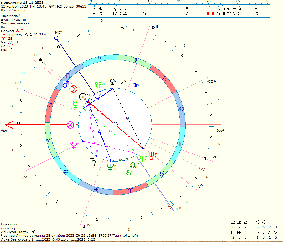 ПОЛНОЛУНИЕ  27 11 2023 по 5 градусу Оси Стрельца/Близнецов